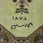 A Turkish prayer rug, early 20th century, the ivory mihrab with hanging lantern and inscription, within a vignette border, 174cm x 110cm.