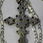A group of silver jewellery, comprising a garnet pendant cross, length 7.4cm, with a neckchain, a pair of garnet earrings, a peridot pendant cross, length 6.5cm, with a neckchain, a necklace and two ropetwist link bracelets.