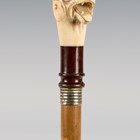 A 19th century walking cane, the ivory handle modelled as a dog's head, inset with glass eyes, length 97cm.