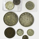 A small collection of Chinese and Japanese coins, including a Chinese Yuan Shih-kai silver dollar, a Japanese silver one yen 1895, Meiji year twenty-eight, the obverse with Gin countermark, and a Hu-peh Province 7.2 candareens.