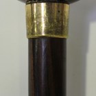 A late 19th century sectional horn walking stick, the curved handle and collar with applied plated mounts, length 91cm, together with an early 20th century hardwood walking cane, the flattened circular banded agate handle above a gilt metal collar, length 83cm.