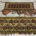 A Turkestan torba, early/mid-20th century, the ivory field with offset rows of guls, within a geometric border, 158cm x 50cm, together with another Turkestan torba, 96cm x 38cm.