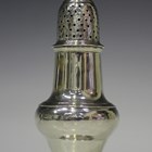 A George III silver pepper caster of ogee baluster form, the pierced dome cover with spiral finial, London 1770, height 12cm.