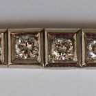 A French white gold and diamond bracelet, claw set with circular cut diamonds graduating in size to the centre within square shaped links, on a snap clasp, length 18cm.
