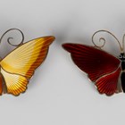 A Norwegian David-Andersen sterling .925 silver and black enamelled butterfly brooch, width 5.5cm, and another David-Andersen sterling .925 silver butterfly brooch with shades of yellow and orange enamelled decoration, width 5.5cm, with a David-Andersen box and a Danehof box.