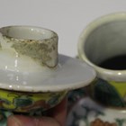 A Chinese famille verte yellow ground porcelain vase and cover, late 19th century, the shouldered tapering body painted with bats surmounting opposing panels of warriors and performers before a dignitary, surrounded by lotus scrolls and flowers, unmarked, height 27cm (restored), together with a Chinese blue and white crackle glazed vase with iron oxide borders, height 44.5cm (repaired), six Chinese turquoise ground porcelain bowls, four Japanese blue and white chargers and two vases.