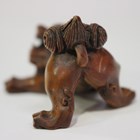 A Japanese boxwood netsuke, 20th century, carved in the form of a playful shishi, incised two-character signature to underside, length 5.7cm.