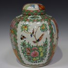 A Chinese Canton famille rose porcelain ginger jar and domed cover, early 20th century, painted with panels of figures, flowers and insects, height 28.8cm.
