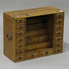 A 20th century Chinese softwood table top cabinet, fitted with sixteen drawers, height 51cm, width 64cm, depth 27cm.