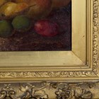 Vincent Clare - Still Life of Pears, Plums and Peaches on a Mossy Bank, and Still Life of Apples, Peaches and Grapes on a Mossy Bank, a pair of 19th century oils on canvas, both signed, each 29cm x 44.5cm, both within gilt composition frames of wide section.