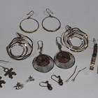 A group of mostly silver jewellery, comprising three Pandora charms, two Pandora rings, with three Pandora cases, a reconstituted amber ring, a gilt bracelet, cased, another bracelet, a bib holder chain, a bangle and ten pairs of earrings.