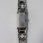 A Baume & Mercier Genève platinum cased and diamond set lady's cocktail bracelet watch, the signed rectangular silvered dial with black Arabic numerals at 12 and 6 o'clock and silvered dot hour markers, the case sides and tapered bracelet mounting set with small cushion shaped diamonds, on a 9ct white gold cord bracelet with a foldover clasp, case width 1.2cm.