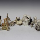Fifteen assorted cat models, including a Lladro Scaredy Cat, No. 5091, Beswick Persian Kittens, No. 1316, and a Royal Doulton grey cat with bandaged paw.