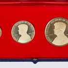A President Kennedy Memorial commemorative gold three-medal set by Metalimport Ltd, comprising 0.257oz, 0.562oz and 1.125oz, with three certificates, cased as one.