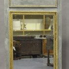 A large 20th century French grey and gilt painted pier mirror, height 228cm, width 117cm. Provenance: Findon Place, West Sussex.