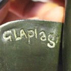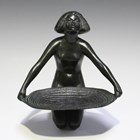 Guillaume Laplagne - an Art Deco green patinated cast bronze figure of a kneeling nude girl, holding a large oval basket, bearing cast signature, height 14cm.