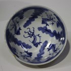 A group of Chinese blue and white porcelain, 18th century and later, comprising a Batavian export ware bowl, painted with fish, diameter 12.2cm, an ovoid jar, painted with prunus, height 12.1cm, a cylindrical vase, painted with figures and birds, height 15.1cm, a ginger jar and a globular pot, height 5.7cm (some faults).
