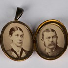 A Victorian gold oval pendant locket, the interior glazed with photographic portraits, detailed '15c', monogram engraved, length 4.8cm.