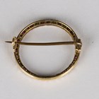 A gold, ruby and rose cut diamond brooch of circular openwork form, diameter 2.3cm, cased.