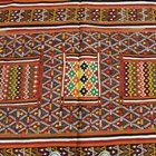 A Tunisian flatweave carpet, mid/late 20th century, the banded field with overall polychrome geometric forms, 346cm x 194cm.
