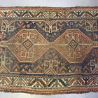 A Ghashghai rug, South-west Persia, early 20th century, the midnight blue field with a shaped ivory medallion and flowering plants, within a terracotta gul border, together with another rug, 120cm x 82cm.