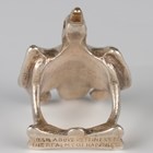 A Moshe Oved silver ring, circa 1940s, modelled as a soaring bird, detailed to base 'Soar above Pettiness to the Realms of Happiness', with gilt highlight to the beak, ring size approx N1/2 (the gilt to the eyes lacking).