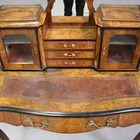 A late Victorian burr walnut and boxwood inlaid bonheur-du-jour with overall applied gilt metal mounts, height 125cm, width 107cm, depth 60cm.
