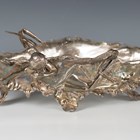 An Art Nouveau WMF plated centrepiece bowl of shaped oval form, the clear glass liner supported by a basket cast with a recumbent water nymph, a dragonfly, reeds and lily pads, bearing maker's stamp to underside of foot, width 43cm.