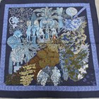 An Hermès silk and cashmere 'Les Legendes de L'Arbre' pattern scarf, designed by Annie Faivre, 90cm x 90cm, with Christmas themed outer box.