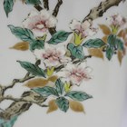 A Chinese famille rose porcelain ginger jar, late 19th century, painted with a magpie and blossoming branches, height 12.2cm, and a Chinese famille rose vase of shouldered tapering form, painted with birds perched on rocks and blossoming branches, height 25cm.