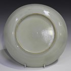 A Chinese famille rose export porcelain saucer dish, Qianlong period, painted and gilt with blossoming branches, diameter 22.6cm (minor rim restoration), together with a similar punch bowl, Qianlong period, painted with fruiting lychee branches, diameter 23.9cm (hairline crack and fritting to rim).