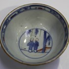 A small group of Chinese porcelain, 18th century and later, including a famille rose rectangular tea caddy and cover, Republic period, painted with figures, birds and landscapes between black characters, height 11.5cm, a 'clobbered' blue and white teapot and cover (repaired) and a diminutive vase, painted in iron red and gilt with irises, height 8.3cm (some faults).