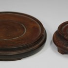 A collection of Chinese hardwood stands, late 19th century and later, including a pair of dish stands with carved and pierced bat supports, height 19.7cm, and assorted circular stands, some with carved decoration, diameters ranging from 6.5cm to 14.5cm.