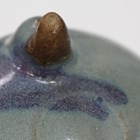 A Chinese Jun-type stoneware tripod censer, Song dynasty or later, of squat globular form with short neck, flanked by upright and scroll handles, covered in an attractive pale blue glaze with purple splashes, height 11.4cm.