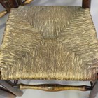 A harlequin set of five provincial ash spindle back rush seated chairs, height 100cm, width 48cm.