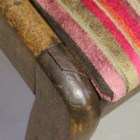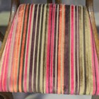 A set of six Regency mahogany bar back dining chairs with finely carved decoration and striped velour drop-in seats, height 86cm, width 48cm.