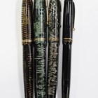A group of four Parker fountain pens, three with striated colour casings, including two Vacumatics and one inscribed 'Burmah Shell Canteen'.