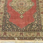 A Kashmir rug, mid-20th century, the pink field with a lobed medallion, within a palmette and scroll border, 180cm x 121cm.