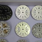 A collection of thirty-seven assorted Breitling wristwatch dials, including eight Navitimer dials in various colours, diameters 3.2cm and 3.3cm, five silvered Chronomat dials, diameter 3cm, an Antares automatic dial and bezel, diameter 3cm, and an Aerospace dial, diameter 3.2cm, together with a collection of assorted bezels.