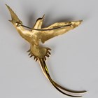 A gold and diamond brooch, designed as a bird of paradise in flight with a circular cut diamond set eye, detailed '18c', length 8.2cm, with a case, detailed 'Astwood Dickinson Bermuda'.