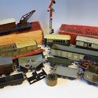 A good collection of Hornby Series gauge O railway items, including a clockwork No. 2 special 4-4-0 locomotive 1185 and tender, finished in LMS maroon livery, a No. 2 clockwork 4-4-2 tank locomotive 1784 in LNER green livery, another clockwork tank locomotive (disassembled and repainted), an 0-4-0 locomotive in LMS black livery, two No. 2 LNER teak coaches, 4204 and 186, two No. 2 LMS corridor coaches, 3888 and 6844, goods rolling stock, including breakdown van and crane in LMS livery, a coal wagon 'Meccano', other wagons and trucks, a No. 2 signal cabin, a station 'Margate', two other stations, a No. 1 water tank, a collection of gauge O three-rail track, a viaduct and a turntable, some boxed (playwear, paint chips, scratch marks, parts missing and faults).