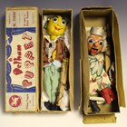 A small collection of Pelham Puppets, including Mr Turnip, King, Mitzi and Swiss Girl, and a lightweight Pelham Puppet theatre, mostly boxed (some playwear, boxes creased, torn and scuffed).