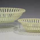 An Elijah Mayer creamware basket, circa 1790-1804, of oval pierced form, impressed mark to base, length 25cm, together with a similar smaller example.
