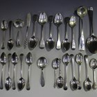 A small group of silver and plated cutlery, including four William IV Fiddle pattern teaspoons, London 1830 by William Bennett, length 13.8cm, and a Scottish christening spoon, the handle decorated with letters of the alphabet, Glasgow 1930 by W.H. Collins & Co, length 9.8cm, silver weight only 316g.
