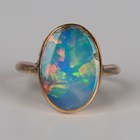 A gold and opal single stone ring, collet set with an oval opal doublet, detailed '9ct', weight 2.8g, ring size approx M.