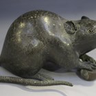 A Japanese brown patinated bronze figure of a rat, Meiji period, modelled clasping a nut, unsigned, length 17.4cm (tail repaired).