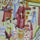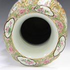 A Chinese Canton famille rose porcelain vase, mid-19th century, the shouldered ovoid body and flared neck painted with figural panels within a surround of birds, flowers and precious objects, applied with gilt moulded chilong to shoulders and Buddhistic lion handles to neck, height 42cm (hairline to rim).