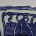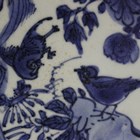 A Chinese blue and white Kraak porcelain circular dish, late Ming dynasty, Wanli period, the centre painted with an octagonal medallion filled with two birds, peonies and rocks, framed by a segmented rim of flowers and precious objects, diameter 29.5cm (repair to rim), applied 'Guest & Gray' paper label to base.