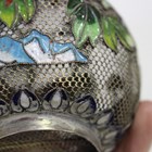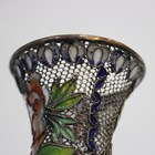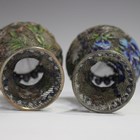 A pair of Chinese plated copper filigree and enamel vases, 20th century, of pierced baluster form, decorated with panels of flowers, height 15cm.