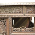 A Chinese carved hardwood side cabinet, late Qing dynasty, fitted with an arrangement of two drawers above two pairs of sliding doors, the fronts and galleries carved and pierced with mythical beasts, including dragons and flaming pearls, the interior with shelves, height 77.5cm, width 89.5cm, depth 37.5cm (faults).
